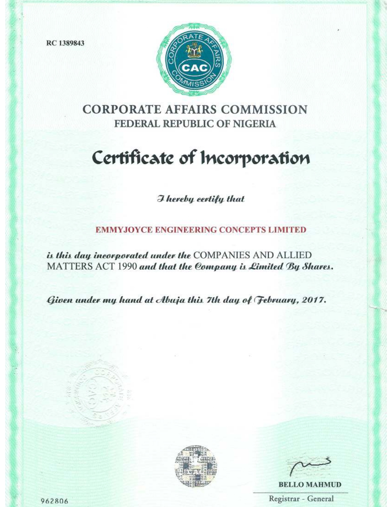 Certificates